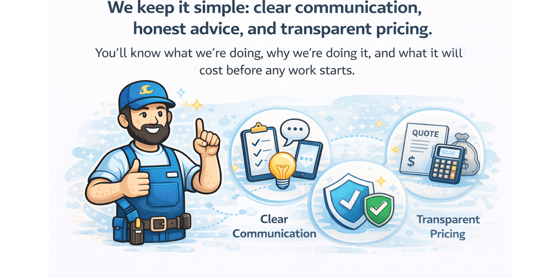 Clear pricing, straight answers, and no surprise work — we confirm everything before we proceed.